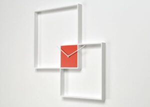Dua kotak minimalis yang saling berpotongan membentuk jam dinding unik ini, bagian tengah berwarna merah. Jika rumah kamu berdesain modern minimalis atau kontemporer, jam seperti ini tentunya cocok sekali.