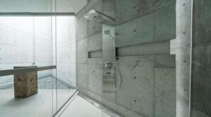 Salah satu ciri rumah minimalis adalah penggunaan semen ekspos sebagai dindingnya. Hal demikian juga ternyata bisa diterapkan sebagai inspirasi dinding kamar mandi keren untuk rumah minimalis milik Anda